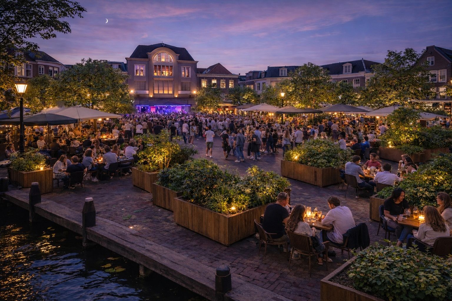 Zelf ziet ze vooralsnog het meeste in de optie waarbij evenementen wel mogelijk blijven. Ook met verplaatsbaar groen kan er een gezellig plein ontstaan, denkt SVL die er met behulp AI (zie boven) al een voorbeeld van liet genereren. Die optie is ook wat de horeca-ondernemers aan het plein willen. Ze vinden daarbij het Centrummanagement Leiden aan hun zijde. “De Beestenmarkt moet wel een plek blijven waar de levendigheid blijft en dus evenementen kunnen plaatsvinden”, zegt Wijnands. “Het ligt ook midden in het gebied dat wij graag zien als centraal uitgaansgebied voor Leiden.”