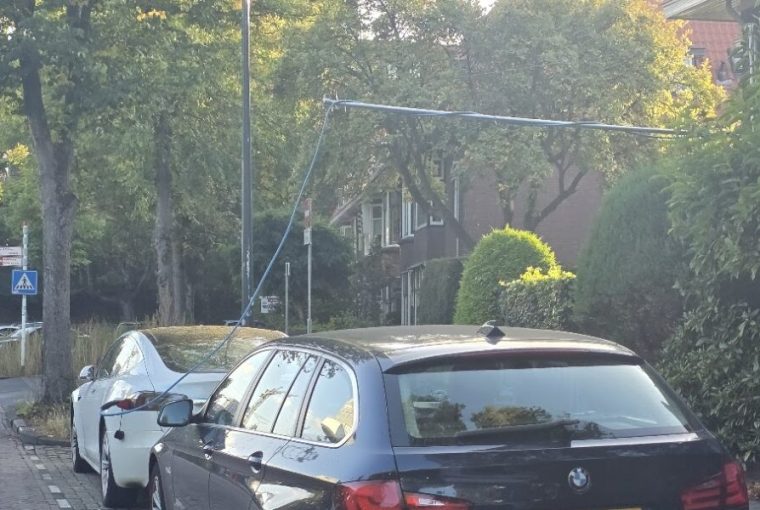 Een goedkopere manier om de auto op te laden is vanuit huis. Kabels mogen echter niet over de stoep lopen. (Foto: Chris de Waard)