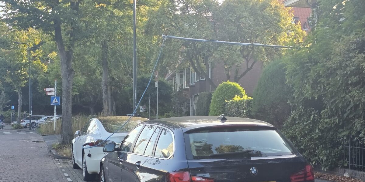 Een goedkopere manier om de auto op te laden is vanuit huis. Kabels mogen echter niet over de stoep lopen. (Foto: Chris de Waard)