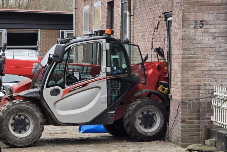 Het landbouwvoertuig, ook wel telescooplader genoemd, reed tegen een zijmuur aan en drukte aan raamkozijn uit de voegen. Politie en brandweer werden ingezet om de situatie te stabiliseren. Er raakte niemand gewond.