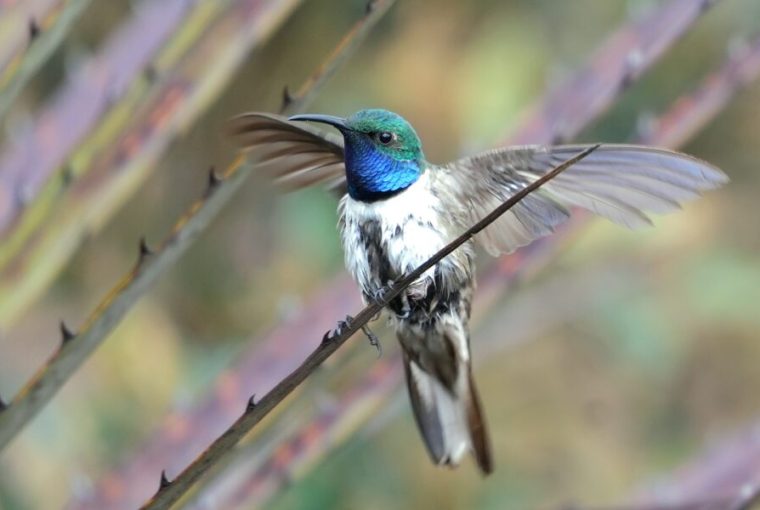 Blauwkeelbergnimf, een kolibriesoort in Ecuador waarvan er nog slechts een honderdtal zijn. (Foto: Michaël Moens)