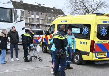 (Foto: Toon van der Poel) Een oudere vrouw is vrijdagmiddag in de Leidse Stevenshof aangereden door een vrachtwagen. De vrouw