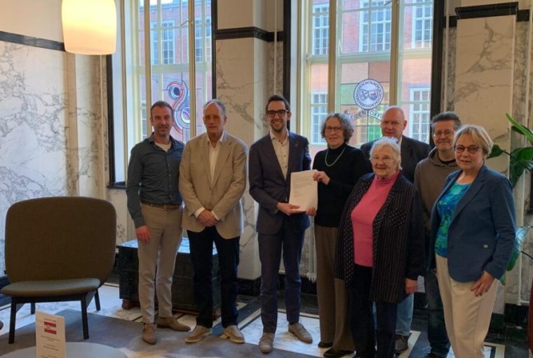 Wethouder Ashley North nam vanmorgen honderden handtekeningen in ontvangst van wijkbewoners die de bus naar de Breestraat terug willen.