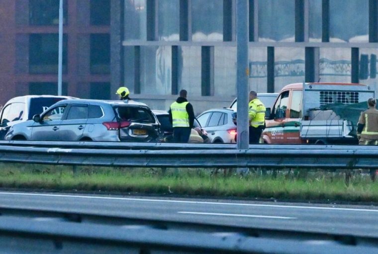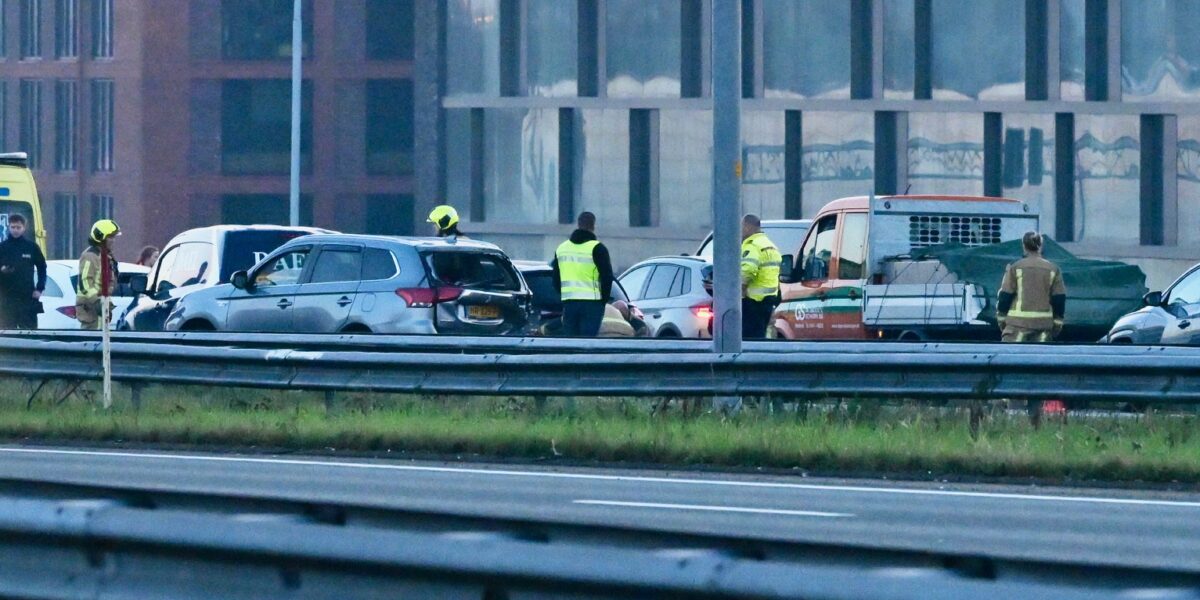 Bij een kop-staartbotsing op de A4 bij Leiden tussen vier auto’s zijn donderdagmorgen rond 7.00 uur twee personen gewond geraakt en met de ambulance naar het ziekenhuis vervoerd. Doordat de hoofdrijbaan werd afgesloten, ontstond er een lange file.