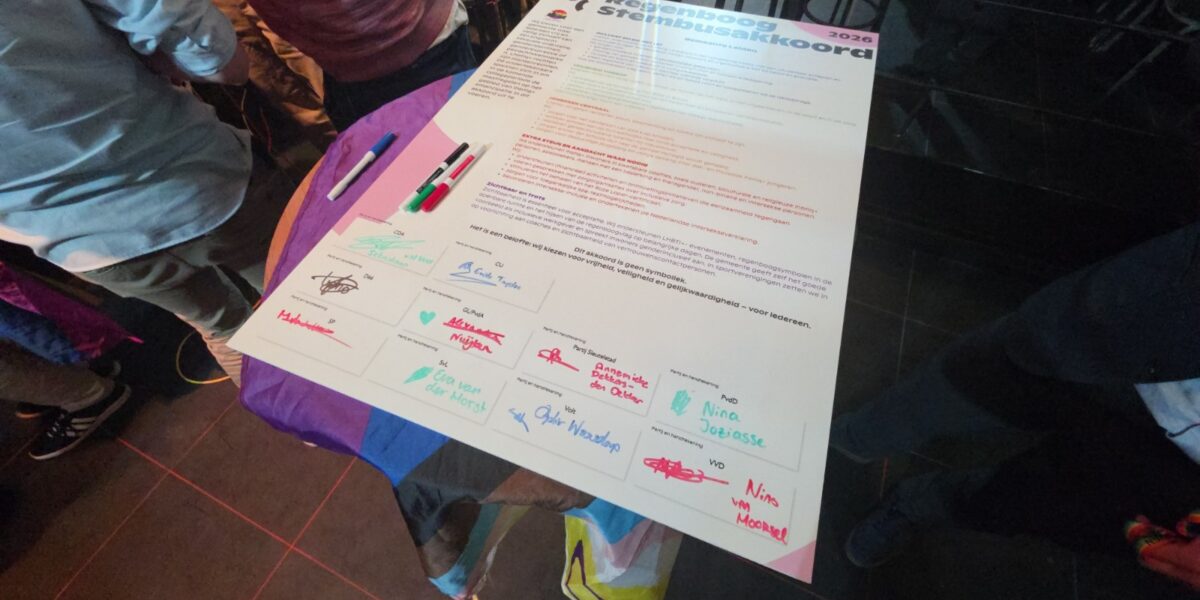Het Regenboogstembusakkoord is geen symboliek, maar een belofte. Zo staat het prominent onder de afspraken die alle aanwezige politieke partijen bij het Regenboogdebat ondertekenden. COC Leiden roept Leidse politici op om pal te staan voor veiligheid, inclusie en zichtbaarheid.