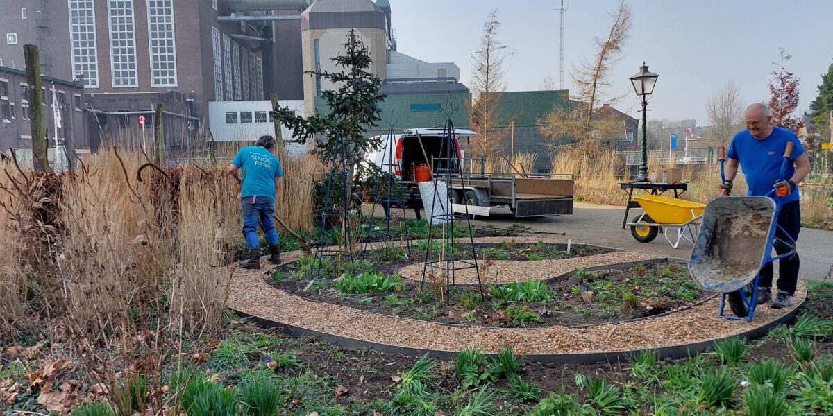 Deze vernieuwende blik op de natuur stond in 2025 centraal in de expositie ‘Thuis in het Groen’. Destijds ontwierp kunstenares en hovenier Annelies Dijkman een bloemenhof op het voorplein van De Lakenhal. Een deel van die natuurlijke pracht, die destijds ook via een speciale route door het Singelpark te bewonderen was, is nu verhuisd naar de omgeving van het Ambachtsplein.