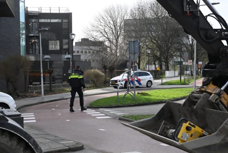 Een overstekende vrouw is vrijdagmiddag rond 16.30 uur op het zebrapad bij de rotonde op de Darwinweg in Leiden aangereden door een graafmachine.