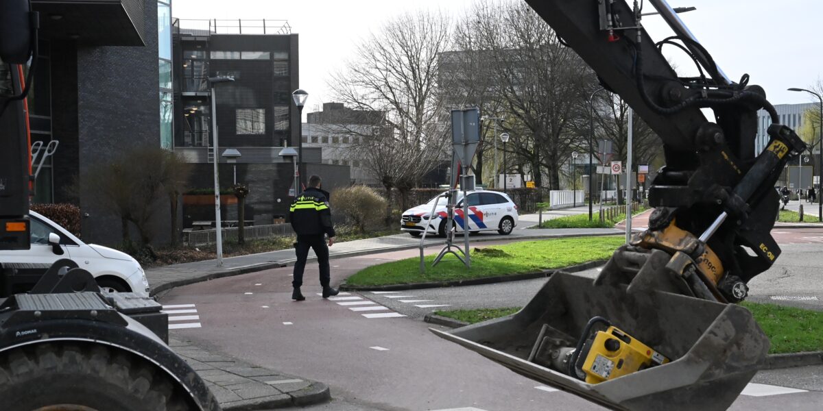 Een overstekende vrouw is vrijdagmiddag rond 16.30 uur op het zebrapad bij de rotonde op de Darwinweg in Leiden aangereden door een graafmachine.