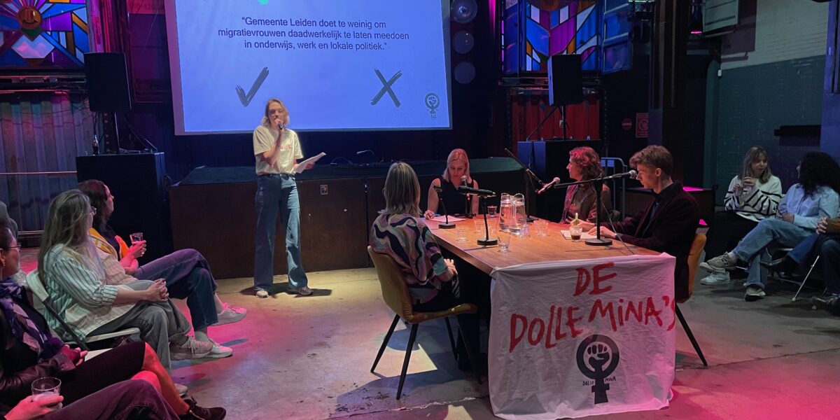 Vrouwen werven voor de politiek is voor alle partijen lastig. Zo bleek in het Politiek Mina Café van de Leidse Dolle Mina’s. “Je moet het durven en de ruimte krijgen”, zegt Anne Keunecke die kwam kijken in de Wibar. “Vaak heb je een schuldgevoel dat je geen goede moeder of zorgzame partner bent.”
