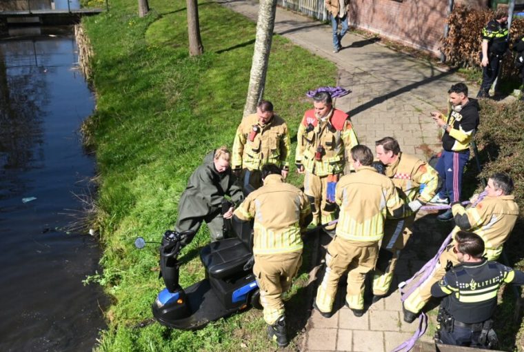 De brandweer heeft de scootmobiel uit het water gehaald en de politie heeft de man naar huis gebracht.