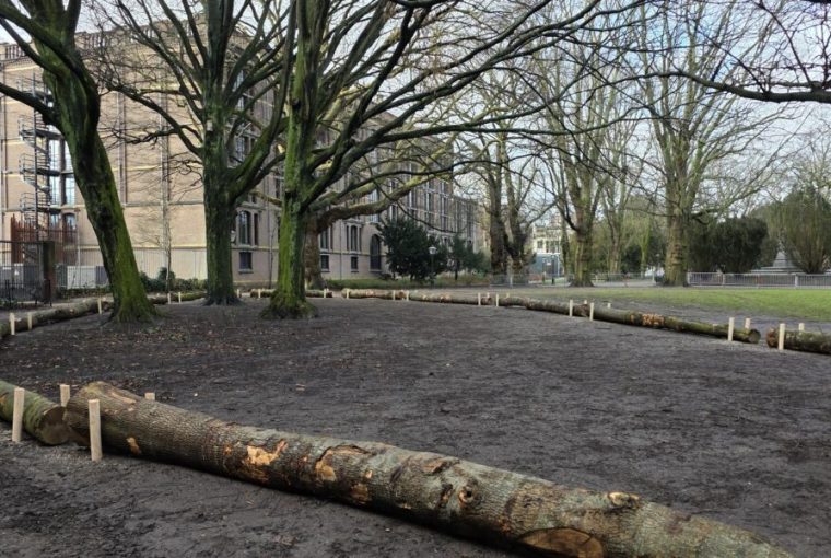 Omdat het beter gaat met het ingezaaide gazon, denkt de gemeente dat de boomstammen die begin februari rond het grasveld zijn neergelegd wel helpen. “Die gaan niet geheel voorkomen dat er betreding zal zijn in de plantvakken, maar ze gaan naar verwachting van de Werfparkvrienden en medewerkers van de gemeente wel verschil maken. Hoeveel moet nog blijken.” Er komen in elk geval geen hekken meer rond de graspartijen. “Uiteraard heeft het afzetten voor het gras een meerwaarde, maar de verwachting is dat het in dit geval ook zonder kan omdat het alleen nog om doorzaaien gaat. En het park is er uiteindelijk ook voor bedoeld om te gebruiken en ervan te genieten. Met het afzetten zou dit worden beperkt.”
