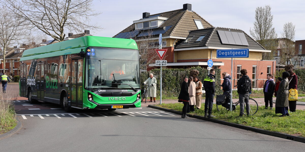 Een fietsster is vrijdagochtend op de kruising van de Hugo de Vrieslaan met de Broekweg, op de grens van Oegstgeest en Leiden, door een stadsbus geschept. Het ongeval vond plaats op een kruising waar fietsers voorrang hebben.