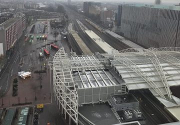 (Foto: Chris de Waard) De perronkappen van treinstation Leiden Centraal krijgen binnenkort een onderhoudsbeurt. “Daarmee kunnen reizigers de komende vijftien