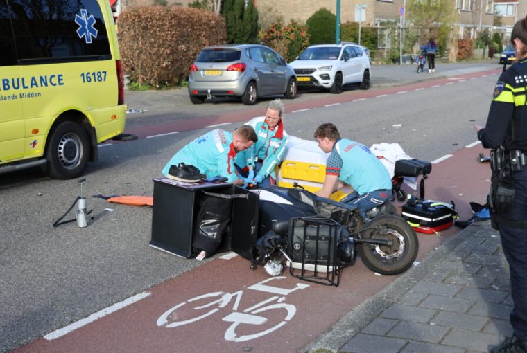 Bij een flinke aanrijding tussen een personenauto en een bezorgscooter op de President Kennedylaan in Oegstgeest is de scooterrijder dinsdag aan het einde van de middag gewond geraakt en met spoed overgebracht naar het ziekenhuis.