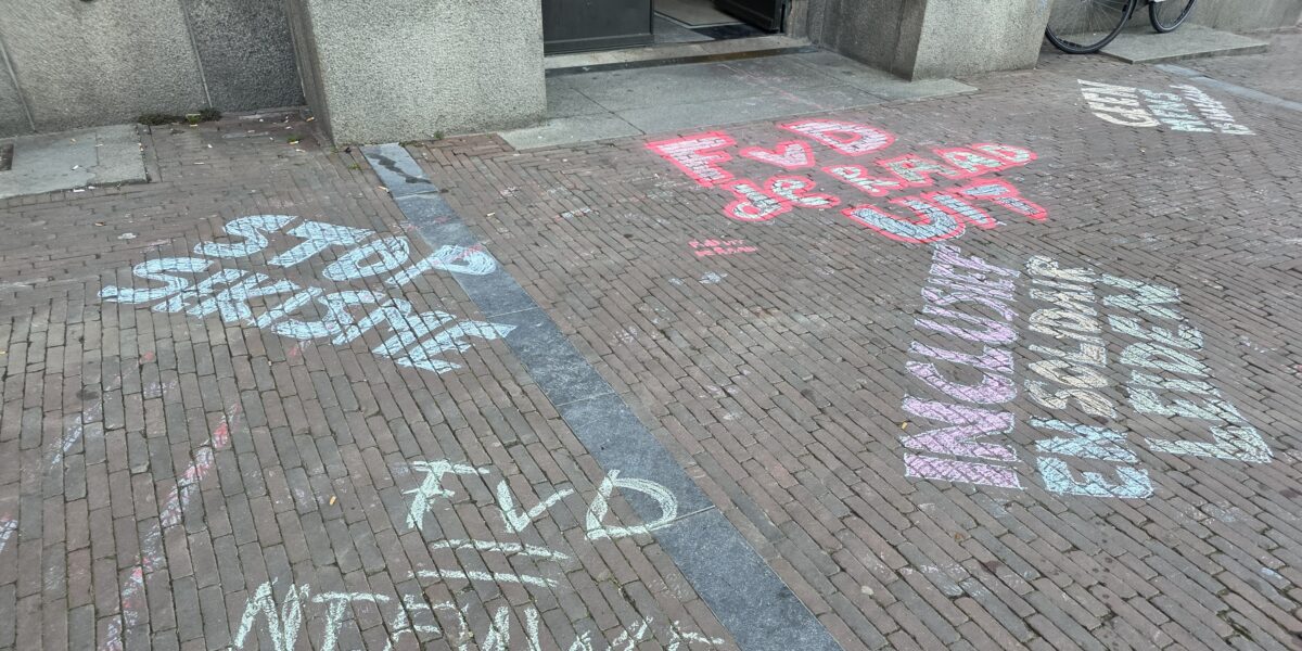 Voorafgaand aan de installatie van de nieuwe Leidse gemeenteraadsleden heeft een groep van zo’n tien ‘anti-fascisten’ woensdagavond leuzen gekrijt bij de ingangen van het Leidse stadhuis. Met het protest wilden de actievoerders aandacht vragen voor een verklaring die de afgelopen twee dagen ondertekend is door 22 Leidse organisaties die daarmee protesteren tegen de komst van Forum voor Democratie in de Leidse raad. De partij wist twee zetels in de wacht te slepen bij de verkiezingen.