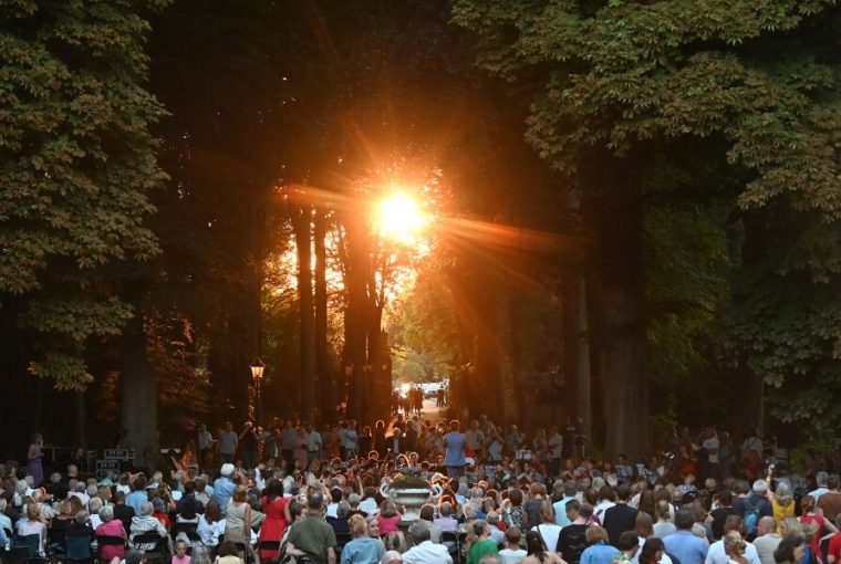 Op de tonen van ‘A Midsummer Night Dream van Mendelssohn, uitgevoerd door het Practicum Musicae Orkest, genoten het eerste jaar enkele honderden bezoekers van de ondergaande zon op de met bomen omzoomde oprijlaan. Na vier jaar is de avond uitgegroeid tot een evenement met meer dan duizend bezoekers die op stoeltjes of picknickkleedjes genieten van het concert en de muziek van de Wouter Kiers Band.