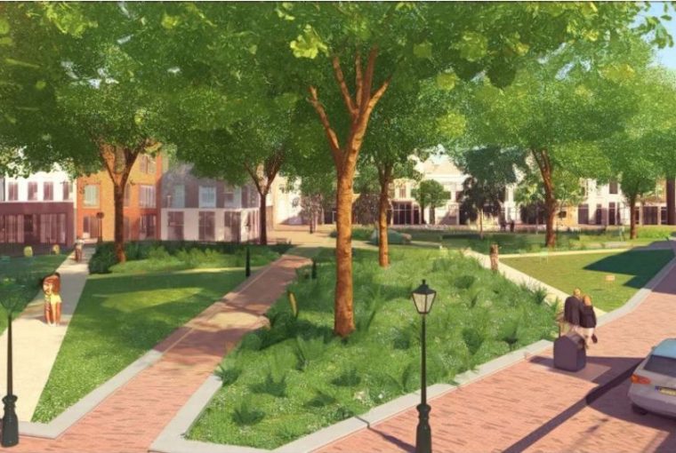 De Kaasmarkt zoals de gemeente hem voor ogen heeft. (Impressie: Gemeente Leiden)