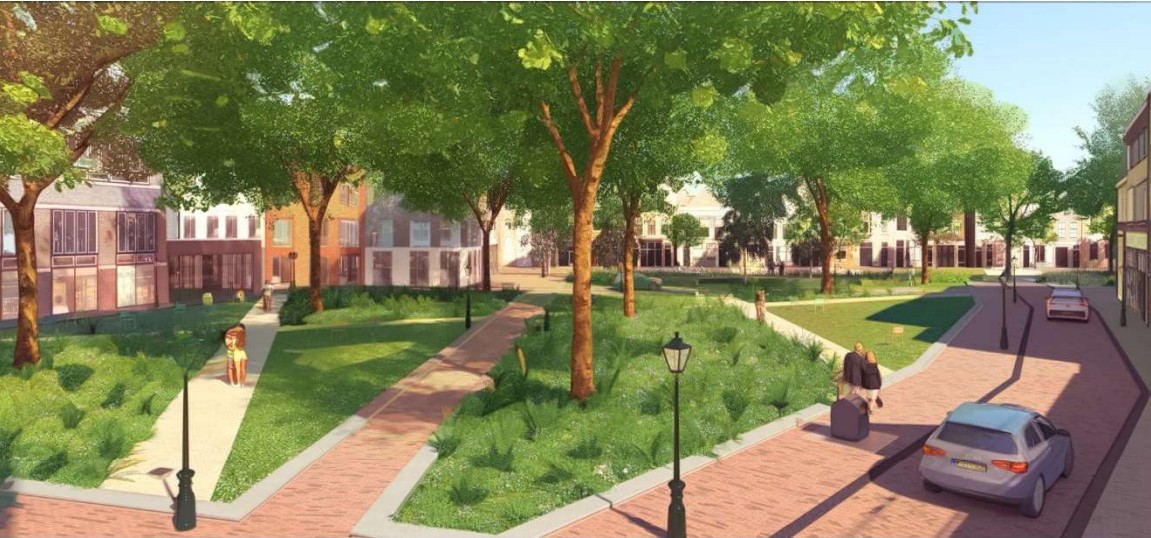 De Kaasmarkt zoals de gemeente hem voor ogen heeft. (Impressie: Gemeente Leiden)