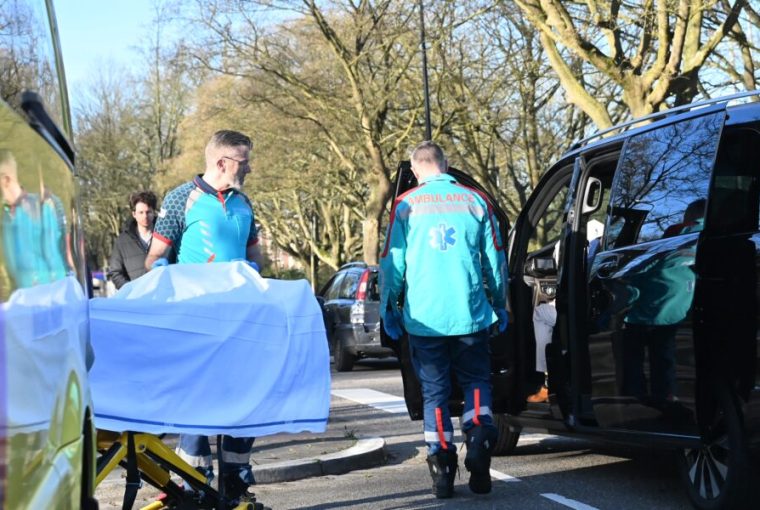 De taxichauffeur wordt naar de ambulance gebracht. (Foto’s: Toon van der Poel)