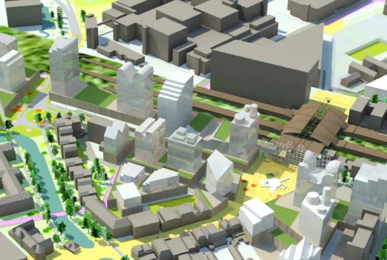 Impressie uit 2011 van het herontwikkelde stationsgebied. (Afbeelding: Gemeente Leiden)