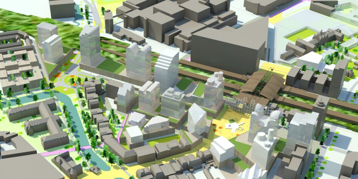 Impressie uit 2011 van het herontwikkelde stationsgebied. (Afbeelding: Gemeente Leiden)