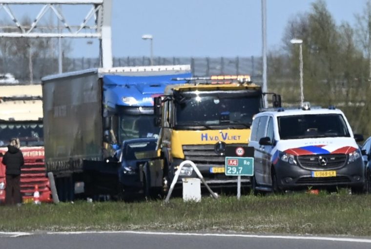 Bij Leiderdorp is een ongeluk gebeurd tussen een vrachtwagen en een personenauto.