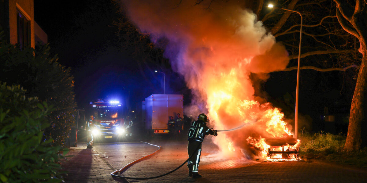 Rond 2.45 uur kwam de melding binnen bij de brandweer dat er op de Admiraal Banckertweg op bedrijventerrein De Waard in Leiden een auto in lichterlaaie stond. Daarmee was niets teveel gezegd.