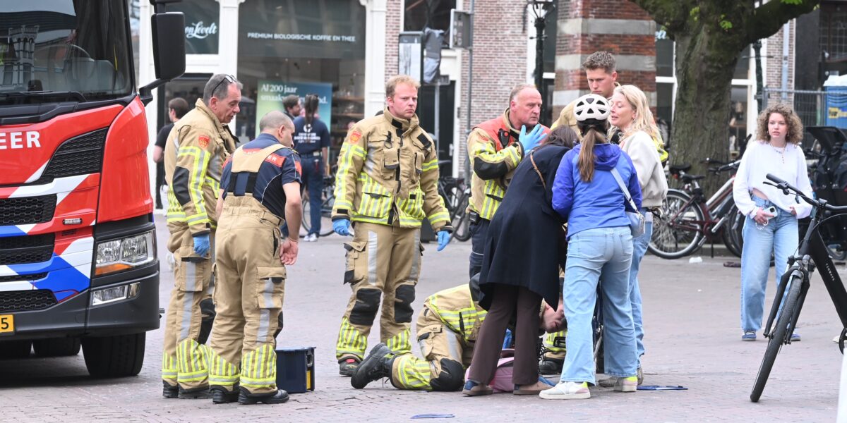 Een jong meisje is donderdagavond rond 19.00 uur op de Vismarkt in Leiden met haar voet tussen de spaken van een fiets terecht gekomen.
