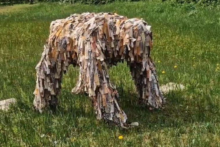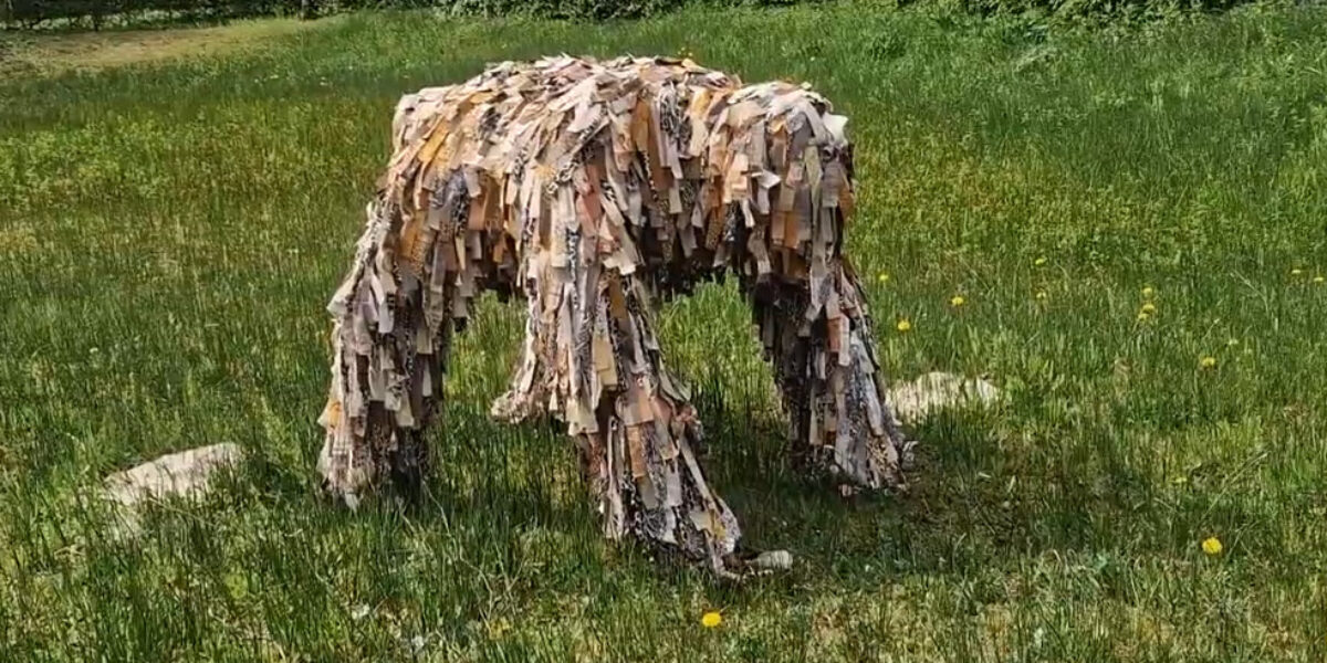 Een van de kunstenaars die dit jaar een beeld exposeert is Aris de Bakker. Hij heeft een beeld gemaakt van een beest, op basis van heel veel lapjes stof. “Die stof heb ik uit kringloopwinkels en van Vinted”, lacht hij. Hij is blij dat hij mag exposeren in de Heemtuin. “Dit is echt een heel mooie plek.”