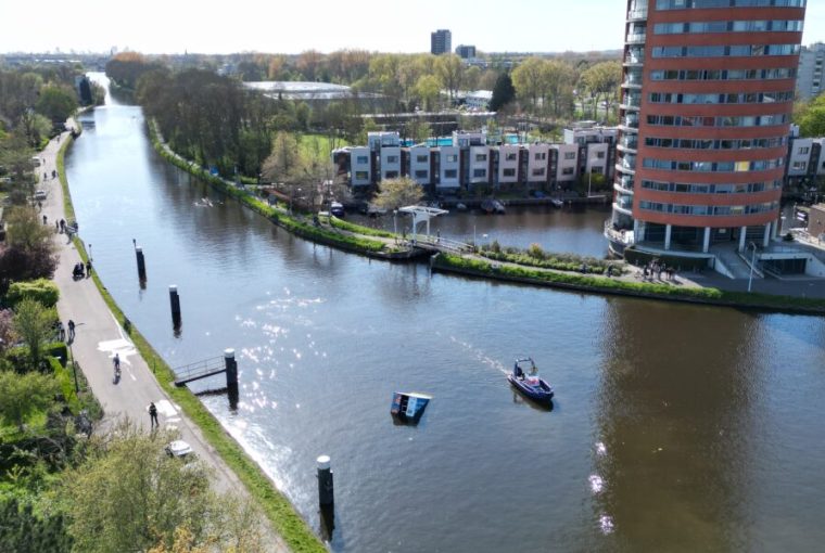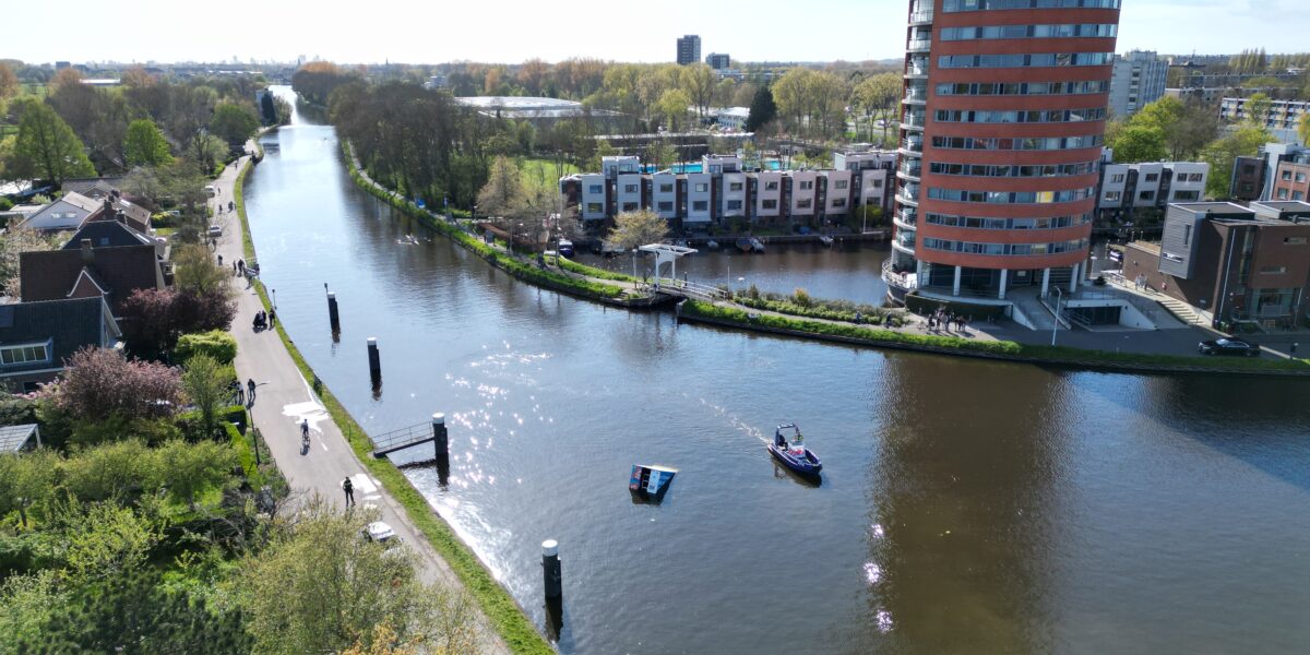 Een bezorgwagen van supermarktketen AH is dinsdag rond 16.30 uur vanaf het Delftse Jaagpad in Leiden het water ingereden. Voorbijgangers die het zagen gebeuren doken het water in om de onfortuinlijke chauffeur te helpen.