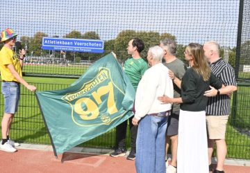 De nieuwe atletiekbaan is vernoemd naar initiatiefnemer Rob Ferguson. Een verrassing voor zijn familie. (Foto’s: Marjolein Altena) Twaalf jaar hebben