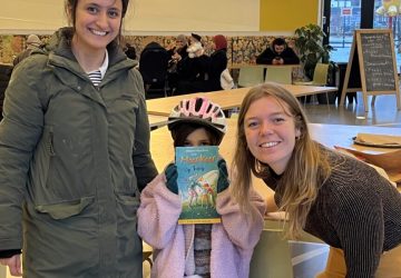 Dana Visser bij de actie Swap Sint met deelnemers moeder en dochter (Foto: Jesse Blom). Bij Het Gebouw in De
