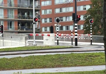 (Foto: Ingestuurd) De Julius Caesarbrug in Leiden heeft donderdagochtend te maken met een storing. De waarschuwingslampen staan te knipperen en