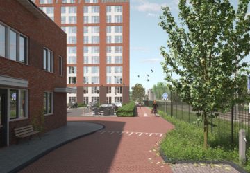 Tussen het spoor en appartementengebouw de Verleyding wordt het fietspad doorgetrokken. (Afbeeldingen: Gemeente Leiden) De gemeente Leiden gaat het fietspad