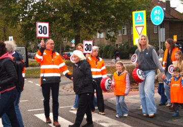 (Foto: Actiegroep ‘Lammenschansweg 30 kilometer’) Bewoners van de Lammenschansweg in Leiden kwamen maandag in actie voor een snelheidsverlaging in hun