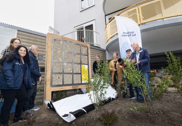 (Foto: Winand Stut/Portaal) Met de ‘opening’ van een insectenhotel is door bewoners, medewerkers en betrokken partners een renovatietraject in de