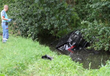 De bestuurster is nagekeken door ambulancepersoneel. (Foto: Regio15) Een auto is vrijdagmiddag rond 14.00 uur te water geraakt langs de