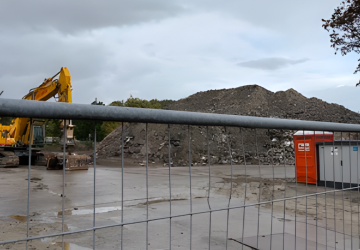 Het slooppuin bij Leythenrode stapelt zich metershoog op. (Foto: VVD Leiderdorp) De berg slooppuin bij het Leiderdorpse verpleeghuis Leythenrode stapelt