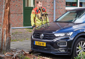 De storm heeft maandagmiddag rond 16.20 uur een boom geveld in de Anna van Burenlaan in Oegstgeest. De boom brak