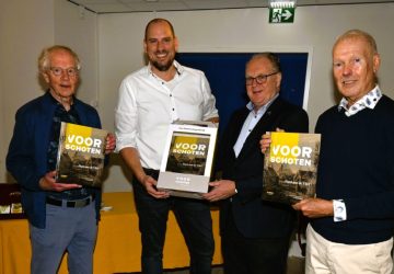 V.l.n.r. Jan Sloof, Tom van Vliet, wethouder Van der Elst en Jan Koster van Museum Voorschoten (Foto: Marjolein Altena) Na