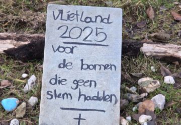 (Foto’s: Chris de Waard) Bij parkeerplaats de Egelskop in Vlietland-Noord is woensdagmiddag een monument opgericht voor de gevelde bomen. “Als