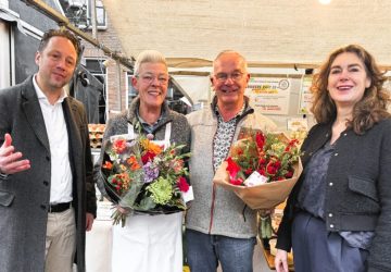 Wethouder Paul de Bruijn en COV-voorzitter Daniëlle Gerits (r) kwamen vanmorgen afscheid nemen van Henk en Cora de Bruyn. (Foto: