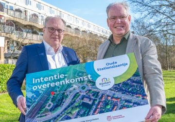 De overeenkomst werd ondertekend door directeur-bestuurder Chrétien Mommers van Rijnhart Wonen (r) en wethouder Hans van der Elst. (Foto: Buro