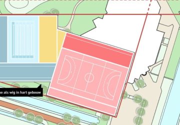 Een schetsontwerp van het nieuwe sportcomplex naast zwembad Het Wedde. (Afbeelding: Slangen en Koenis Architecten) Voorschoten, 15 november 2025 om