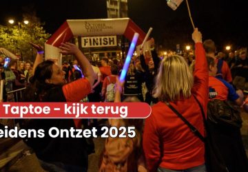 Een ‘lint van licht’ trok donderdagavond weer volgens traditie door Leiden in de Taptoe der Verenigingen. Klokslag 19.30 uur werd