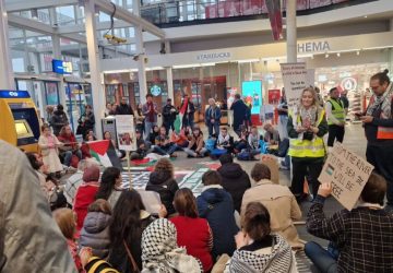 (Foto: Jan Frensen) Pro-Palestina activisten hebben een nieuwe sit-in op Leiden Centraal aangekondigd. Die vindt deze donderdag plaats tussen 18.00