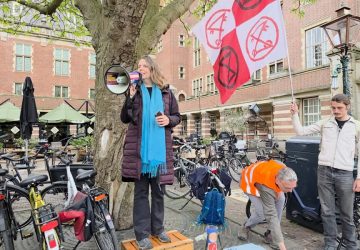 Martine van Schaik eerder dit jaar bij een Leids klimaatprotest. (Foto: Chris de Waard) Met de verkiezingen in aantocht dreigt